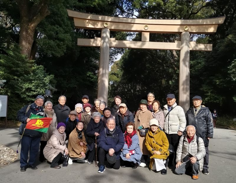1月の「日だまり」は今年も恒例の「初詣」です。今年は2年ぶりに明治神宮に初詣しました。 午前11時に24名の皆さんがJR山手線[原宿駅」改札口に集合しました。 全員が揃ったところで、参拝の前に明治神宮正門の大鳥居の前でまず記念撮影をしました。 1月20日というのに、初詣に来る人々でまだ結構混んでいるのに驚きました。そして、特に外国からの観光客が目立つのも最近の特徴でしょう。