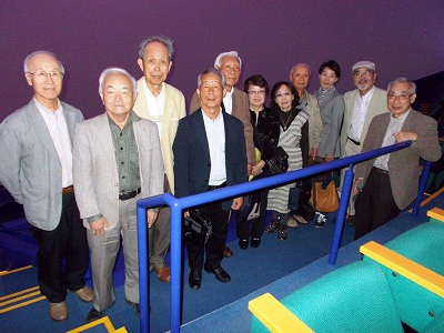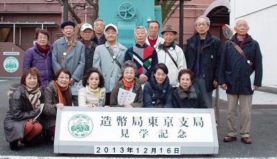 ●第87回 平成25年12月16日(月) 造幣局見学 16名参加 12月16日、2時にJR大塚駅改札に16名集合。大塚から久しぶりの都電に1駅乗る。 2時半見学者のバッチをつけて大きな部屋に案内され、造幣局の歴史や貨幣の歴史の お話を聞いて、お馴染みの映像でのお勉強10分くらい。本局は大阪にあり、東京と広島に支局がある。その後「造幣東京博物館」で説明を聞きながら見て歩く。知らないことばかり。500円硬貨の偽造事件があってから、それを防ぐ技術のことども。勲章も造幣局が作っているとのこと。 各都道府県に記念貨幣が発行されていて、例えば高知県は坂本龍馬などの絵がきれいな色つきでその工芸品のような技術に感動しきり。3時半お土産も買って、見学終了。 ![]() 池袋のサンシャインビルまで歩き中のBAQET BISTROという素敵なところで二次会。 7時に散会。7時過ぎの池袋は、すごい人。駅まで迷子にならないようについて歩く。 ●第86回 平成25年11月18日(月) 蔵前水の館(下水道局)9名参加 11月18日(月) JR浅草橋改札に9名集合 歩いて5分くらいのところにある「蔵前水の館」に見学に行きました。 東京都は各家庭の台所、お風呂、トイレ、雨水などの排水を処理し、 きれいにした水を川に戻しています。 地下に埋められた排水管は 東京都下水局分だけでも1万5千キロもあるそうです。 排水管の一番大きなものは直径が8メートルにもなります。 地中に埋められているため一般の人は実物を見る機会はほとんどありません。 都内で一か所だけ見学ができるところが浅草橋駅に近いところにあります。 「蔵前水の館」です。 下水処理設備の展示物を見た後、地下30メートルまで階段を下り、実際汚水が 流れているところを見学しました。心に刻んだのは、油の食器などの処理です。油を纸 などで拭き取ってから、水で洗ってくれると、助かると言われたことでした。 個人ではなかなか行かれないところに行かれるのが、見学会のいいところです。 ![]() 二次会まで時間があったので、浅草の久月と近くの大きな手作りフラワー店を見て、4時半大戸屋で早めの二次会。空いていて安くて、歩き回って見つけた河端さんに感謝して6時半ころ散会。 お礼のメール「ふだん、なにげなく使っている水の処理に膨大な設備と労力が使われていることが良くわかりました。ありがたいことです」 ●第85回 平成25年10月18日(金) 多摩六都科学館見学 参加者 10名 多摩六都科学館見学 10月18日台風一過、曇りがちでもいいお天気に恵まれて、参加者10名田無の駅に 集合。ミニバスに乗って、科学館へ。板倉さんのお顔でフリーパス。チャレンジの部屋・からだの部屋・しくみの部屋・自然の部屋・地球の部屋と五つの部屋に分かれていて、幼稚園の子供達が大勢遊んでいた。サイエンスエッグは最も先進的なプラネタリュームとして世界一に認定された最新鋭投映機。星空が頭の上いっぱいに広がって目が回った。終わって、20分ほど、特別に館長さんの映像を見せていただく。ちょうど6時、誰もいないバスに乗り込んで、田無の駅へ戻り「餃子の王様」で二次会。間なし館長さんもいらして、宇宙のお話など伺う。 ![]() 感想文「昨日は、面白く、有益な一日でした。高柳先生からは夢をもたらすようなお話を伺えて、素敵でした。」 ●第84回 平成25年9月27日(金) 日航整備工場見学 参加者 10名 日航整備工場見学 9月27日10名の参加者は、2時半に東京モノレール新整備場駅に集合。 JALの見学者入口から、入館証の認証を受けて、中に入り、広いお部屋に荷物などを置いて、 3時20分まで自由時間。機長服やスチュワーデスの洋服を着ての写真撮影やら、操縦席に座ったり、乗ることのない、ビジネスクラスの座席に座って寝てみたり・・・3時20分からビデオでいろいろの会社説明あり。中で、心に響いたのは、事故があってその犠牲の上に進歩があるということ。科学の進歩はみんなそうなのかもしれない。そのあと、個人の見学者5名他の会社関係20名ほど、 そして我々10名は、ヘルメットをかぶって工場内見学に。大きな飛行機が半分 解体された姿で20名ほどの整備員が仕事をしている。豆粒のよう。下に降りて、目の前で見る飛行機は大きかった!見学している間も3、4分おきに飛行機が降りてくる。JRのように正確に運営されているよし。鶴のマークを見て感動。5時近くに玄関に送られて、ANAの建物の中の居酒屋さんで、楽しく団欒。7時帰途につく。 ![]() ●第83回 平成25年8月26日 (月) 鴨川1泊の旅 参加者9名 8月26日、9時半浜松町に集合。25分には9名勢ぞろい。 バスが渋滞で遅れたけれど、満杯で10時過ぎに出発。我々は最後まで行くので1番後ろの席。海ほたるでトイレ休憩。3か所位に止まって、二人,三人と下ろして行く。最後の誕生寺近くまで行ったのは日だまりだけ。すぐ目の前のお蕎麦屋さんで、(これも予約してあり)それぞれおそばを注文、「ビール頼む」の声あり。のどを潤し、お腹を整えて250メートル先の誕生寺へ。 どこからともなく現れた人が無