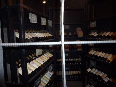 各年代のワインがそろっていて歴史を感じた。ブドウの種類や育て方などの説明がある。1時過ぎ見晴らしの良いレストラン「ワインテラス」に到着。