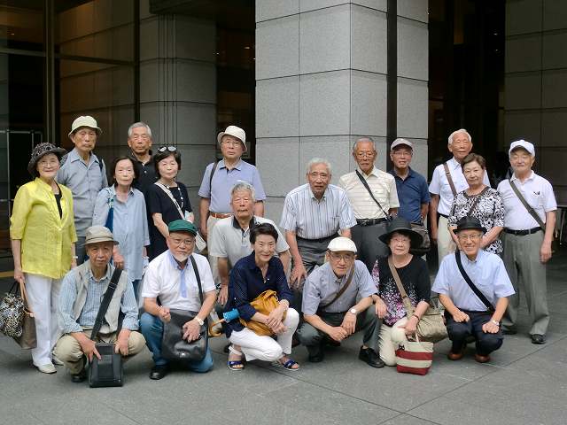 6月15日 梅雨の時期なのでお天気を心配していたら、「雨おみな」も「雨おのこ」も「日だまり」にはいらっしゃいませんで、夏日になった・・・JR品川の中央改札を出た時計台のところに1時40分17名が集合。