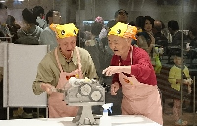 ワークショップでは、「自分のDNA抽出に挑戦!」で、一人ひとりのDNAを小さな試験管に収めることに成功。小さな試験管は持ち帰って冷蔵庫にしまうのですって!!どこのだれだか分るのかと思った・・・また「プログラミングでロボットを操る!」では二人一組で、タブレットでプログラミングしてロボット車を走らすことができた。すべてのロボットは、「じゅんじ」「くりかえし」「ぶんき」のを組み合わせて、命令をつくるのだそう。 シアターでは「東京スカイツリー634mへの挑戦」の最先端の建設過程を見ることができた。あの建設に従事した方々の何と男らしいことか!惚れ惚れした。アザラシ型の「パロ」は抱っこしてなぜたりすると、目をつぶったり尻尾を振ったり「癒しのパロちゃん」 、38万で売ってるそうだ。ロボットの「ワカマル」君は6月に行ったキャノンプラザで握手したけど、再会した。なつかしい。 二次会が終わって外へ出たらまだ明るい。「お茶飲みたい」の声で10人が、少し歩いて伊藤忠青山アートスクエア(http://www.itochu-artsquare.jp/)リンゴ箱のテーブルでお茶を飲んだけど、絵の展覧会か何かをしたあとのような何ともレトロな気分。安くて美味しいお茶で満足。 地下鉄で渋谷行きと新橋行きに分かれて散会。
