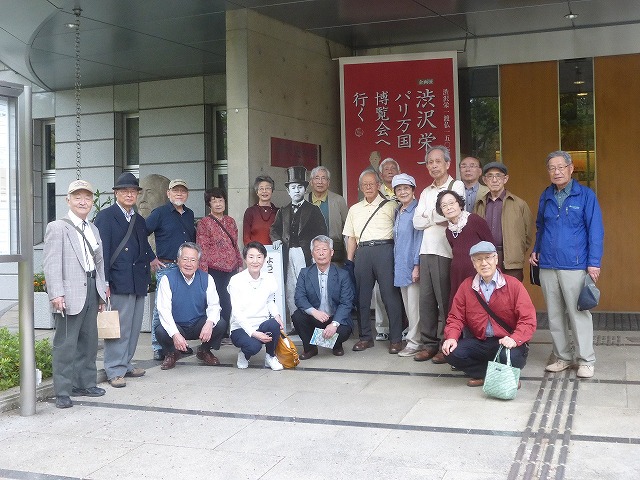 次に飛鳥山公園内にある渋沢史料館を見学。渋沢栄一が参加した「パリ万国博覧会訪問使節団」特別展を開催中で、150年前のパネル写真や直筆の手紙資料等が展示され、館長自らの詳しい説明、渋沢栄一は、明治5年の第一国立銀行をはじめ500社の企業・600におよぶ経済団体等の設立運営に関わり、日本の経済社会の創成期に多大な貢献をした人物であることをあらためて認識した。