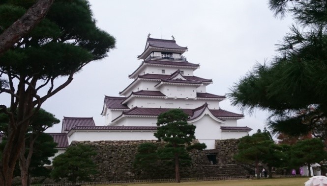 (3)「鶴ヶ城」は2013年NHK大河ドラマ「八重の桜」で有名になった会 津の名城です。築城以来、400年難攻不落の名城、戊辰戦争で1か月の籠城の末開城しました。美しい天守閣、また城郭内には戦国時代、城主・蒲生氏郷が千利休の子(少庵)を匿った茶室「麟閣」があり、お抹茶とお菓子を皆で楽しみました。「鶴ヶ城」へ向かう街道沿いに「飯盛山」がありました。ここは白虎隊の少年兵たちが山頂から燃える街並みを眺めて「鶴ヶ城落城」と勘違いして20名が自刃した悲劇の山です。