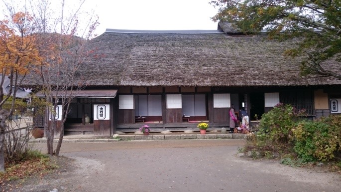 (4)大内宿は会津若松と日光を結ぶ会津西街道にある半農半宿の宿場町です。 今なお、400年前の姿を残しています。錦秋の山に囲まれた集落に残る昔ながらのかやぶき屋根の宿、土道、「赤べこ」や「起き上がり小法師」などの会津地方に伝わる郷土玩具を楽しみました。