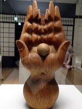 さて、やっと河井寛次郎展であります。本展は陶芸のみならず木彫、家具、書、言葉、愛用の品々各種ノートに至るまでを網羅しており、河井の創作活動のすべてを伝えんとする大変力の入った質の高い企画であります。しかし、河井の深い精神世界の前では長年に渡る‘寛次郎命’的思い込み知識の底の浅さは立ちすくむのみでありました。