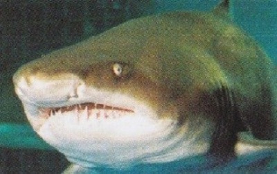 見終わって出口はシャークホール、大きなサメが2匹回遊しながらにらんでいる。サメには鱗がない。サメ皮でわさびをおろすといいんだよ、などといいながら、見学終了。