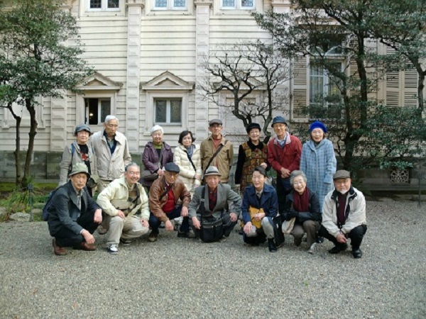 今年は例年より早く3月17日に桜の開花宣言が出された東京であったが、今日20日は雨模様の冬に戻ったような寒い日でした。「元気に100歳」クラブ「日だまり」の面々は元気に定刻より早く、本所吾妻橋駅16名集合。