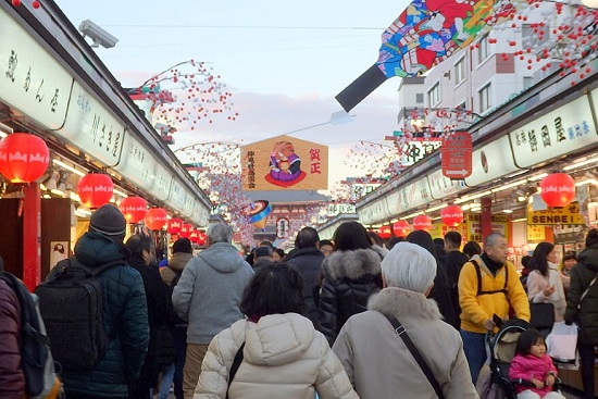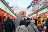 浅草は丁度「浅草羽子板祭り」の期間中で、数10軒の羽子板の露天が軒を連ね、仲見世から宝蔵門まで境内いっぱいの人の波で賑わっている。私たちは時間がないので仲見世通りを急いで通り抜け、本堂で参拝するだけで残念でした。