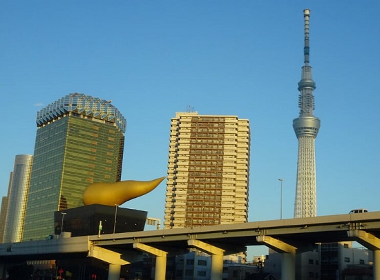 船の幅ぎりぎりの狭い水門から、東京湾に出て行く。船内では普段とは違った視点で、両岸に移りゆく町を眺めながら、皆楽しそうにお喋りが始まる。色や形の個性的な13の橋の下をくぐる、橋に手が届きそう。浅草近くになると吾妻橋、アサヒビールのアレ、スカイツリーの3点セットが見え、ひとしきり皆の話題となる。吾妻橋をくぐったらゴールの浅草で4時到着