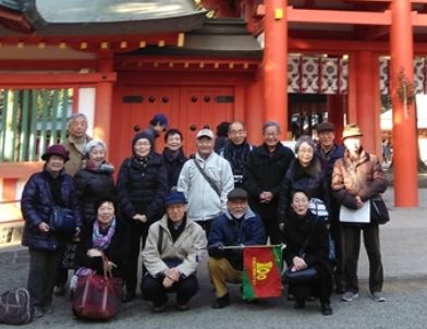 「旧古河庭園」の前の道を挟んで、「平塚神社」があります。平安後期に源義家、義光、義綱、三兄弟によって建立されました。私たち19名は、メンバーの健康とこれから「日だまり」が皆に愛されることを念じて、お祈りしました。