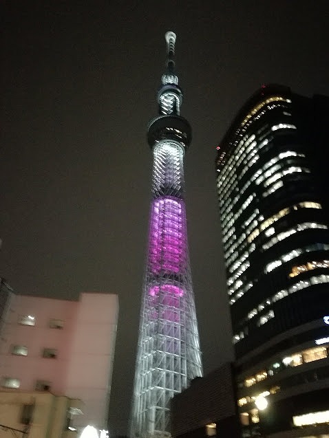 「庄屋」での2次会の後、雨も上がり夜景にそびえるスカイツリーを写真に収め、押上で解散しました。