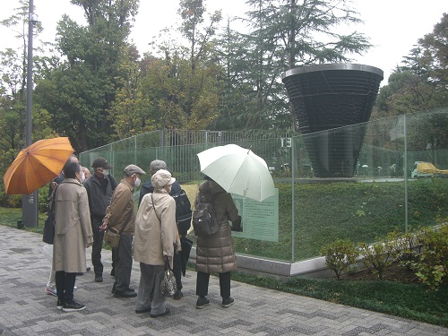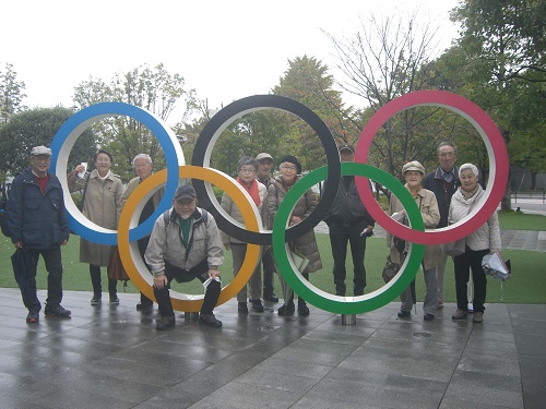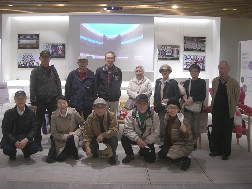 11月15日、「日だまり」会員12名は、小雨の千駄ヶ谷駅に集合した。 その日は、国立競技場は都合で見学できなかったが、新しく開館した「日本オリンピックミュージアム」を見学した。