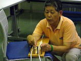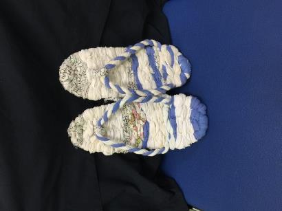 片方は前回の作業で何とか形になったものの仕上げまでたどりつけずにいた物の仕上げと、もう片方を仕上げ1足に仕上げるのが目標でした。写真にありますように、桑田さんのぞうりは見事に完成しました。清水さんの可愛いぞうりももう一息です。