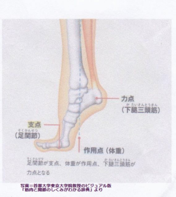 いてスムーズに歩ける。カカトの上げ方は、最初は低く。