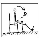 椅子に浅く腰掛ける。膝をのばして、つま先をあげる。踵は床につけたまま。親指とひとさし指の付け根の第2関節からまげてグーを作る。のばす。これを繰り返す。左右別々に、同時にはやらないこと。