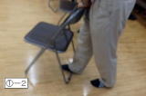 ② 椅子の前端下をそれぞれの手で持ち、先ず身体を後ろに倒し、椅子