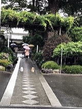 カカトを上げると、連動してひざが曲がる。その曲がったヒザ下を伸ばし、最初に、足裏の肉球を着ける。次いでカカトを着け、ヒザを伸ばし、素早く身体を足ゆびに載せる。身体の重心は丹田。歩幅は狭く、効果としては、息が上がらず歩ける。手をどこかに触れて安定させて行っても良い。