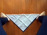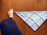①椅子に浅く座り、ハンカチを半分にしたような三角形を利用して