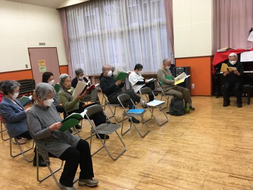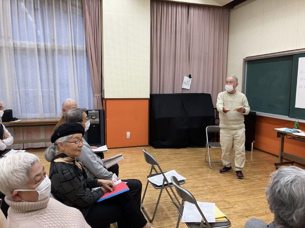 10月30日(月)午後2時から恵比寿の長谷戸社会教育館(小音楽室)で開催しました。15名の皆様が集まってくれました。いつものように橘高先生のご指導で「足あし体操」、その後、辻さんのリードで「歌の時間」を楽しみました。