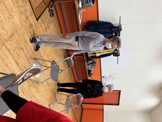 歩行器を使っている井上さんも、先生の指導で一人で歩けました。