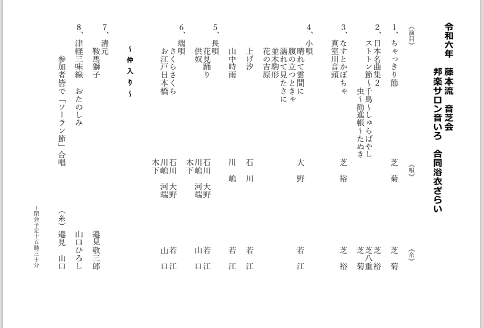 プログラムは事前に大野が「日立目白クラブ」に発送する