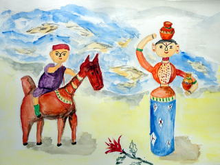 (武智さんの作品「馬に乗る少年と甕を持つ少女」)