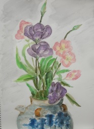 このような屋外でスケッチをしたいと思っていたのですが、4月9日当日は風が冬のように寒くて、皆さんの健康を考えて迷った挙句、結局、いつものように室内で静物を描くことにしました。今回はご都合のつかない人が多くて、出席者は5人で、少しさびしい会となりました。