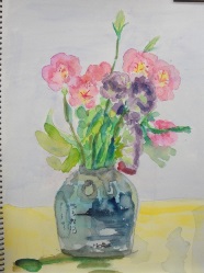 当日は、遠矢慶子会員と中村峯子会員が持ってきてくれた「庭に咲く花」「人形」「瓶」等の静物と教室の窓から見える公園風景をスケッチしました。