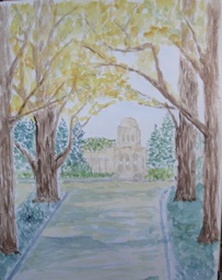 (1)黒田重雄さんの作品(イチョウ並木とその先に見える聖徳記念絵画館を描