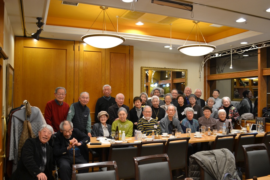 実は私は味覚音痴で料理には全く疎いので、その席に出てきたご馳走の説明は出来ませんが、お皿の空になっていく具合を見ていると料理はさぞ美味しかったであろうことが想像出来ます。それに加えて皆さまの弾んだ声と笑顔が良いですね。中西さん、上田さんをはじめとして、皆さま老いて益々お元気でいらっしゃるお姿を拝見していると、去年齢90を越した私も負けちゃいられない気にさせられます。本日お見えにならなかった同年配の仲間達ともこの気分を分かちあいたいものです。